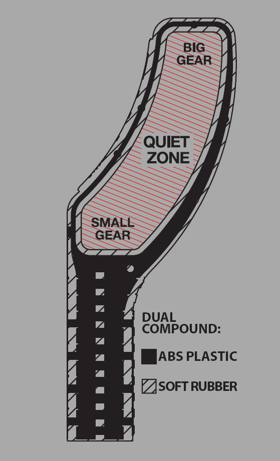 • Dual compound design for optimal stiffness, durability and sound damping